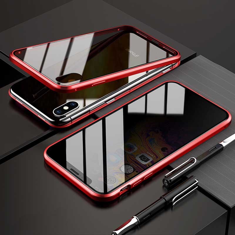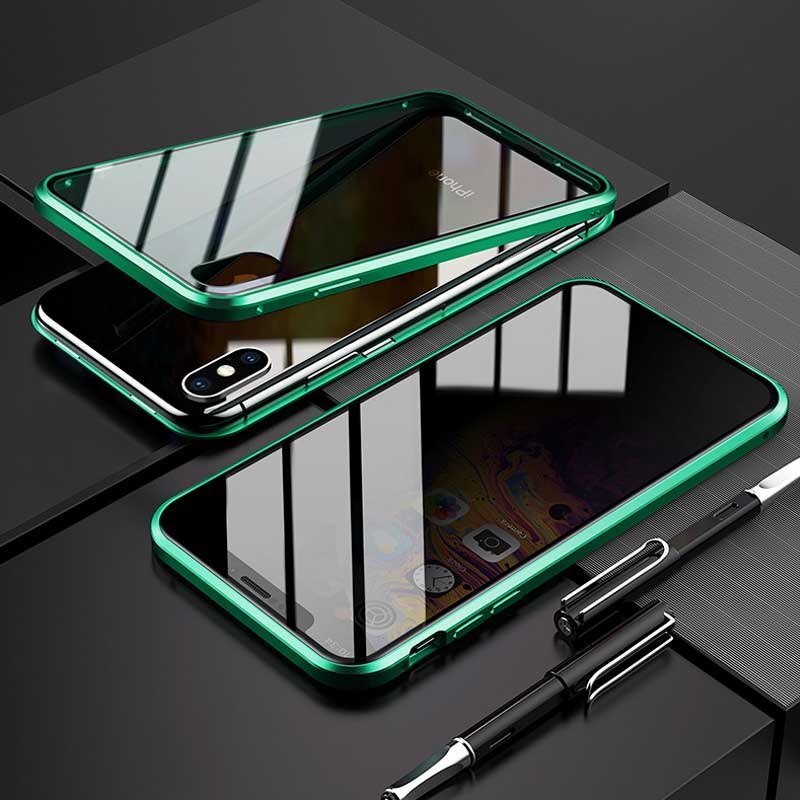 Protect Privacy Tempered Glass + Magnetic Phone Case for iPhone 7 8 Plus X XS MAX XR Fundas Metal Bumper Double-side Glass Cover